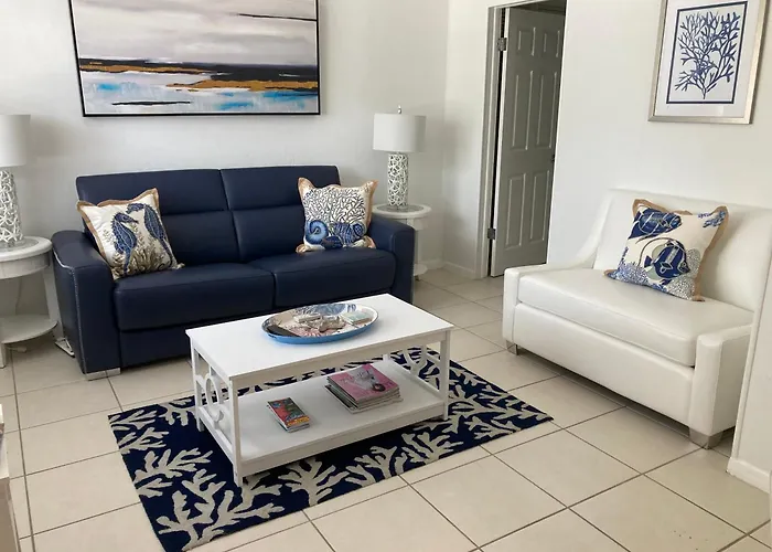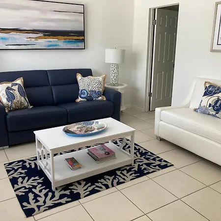 Gorgeous Beachy Chic Condo In Key Biscayne donne sur la rue et comprend un patio et un coin salon avec une climatisation. Le logement comprend 1 chambre à coucher à coucher. Les visiteurs de l'appartement profiteront du confort d'une salle de bain avec sèche-cheveux et serviettes. Une douche à l'italienne et une toilette séparée sont aussi disponibles.